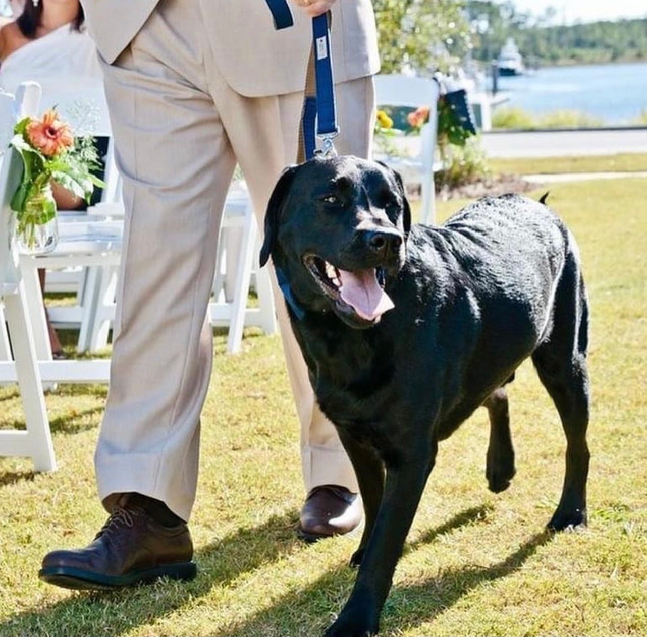 He wasn’t great on a leash—pulling was kind of his thing and he had a mind of his own. So when Alyssa and Sean got married and my husband walked down the aisle with Guinness, he took that opportunity to say hello to just about everyone along the way. Richard kept him focused with a pocket-full of treats. Labs are super food driven!